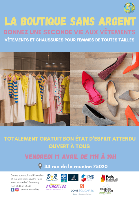 La boutique sans argent spéciale femmes👗👠 Donnez une seconde vie aux vêtements et profitez-en pour en récupérer gratuitement ! Vêtements et chaussures pour femmes de toutes tailles 👚 📅 Vendredi 17 avril 🕔 17h - 19h 📍 34 rue de la Réunion Gratuit et ouvert à tous ✨